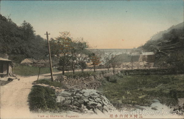 Front: View of Okawachi, Nagasaki. 堀水內河大崎長 Back: Cartolina postale - Dopisnice - Levelezo-Lap - Karta korespondencyjna - Briefkaart Correspondenzkarte - Tarjeta postal Brefkort Brevkort - Открытое письмо 46k MADE IN JAPAN きか