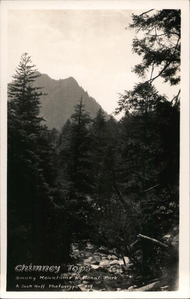 Front: Chimney Tops Smoky Mountains National Park A Jack Huff Photograph 419 Back: AZ OS А PLACE ANO z o