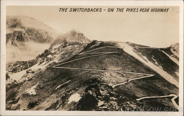 Front: THE SWITCHBACKS ON THE PIKES PEAK HIGHWAY 1 Back: 83460 b2RS SPONDENCE ELOSL AAZO A = STAMPER TA Colo