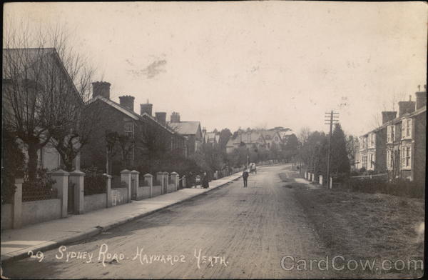 Front: 29 SYDNEY ROAD. HAYWARDZ Yeath TH Back: POST + CARD xxo For Inland Postage Only This space may be used for communication arrive quite well safe. Rose HAYWAD SH 8.45.PM Sussex HALF REVENUE mts morisy y. The Drive West Worthing