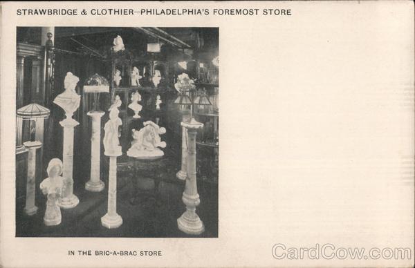 Front: STRAWBRIDGE & CLOTHIER-PHILADELPHIA'S FOREMOST STORE IN THE BRIC-A-BRAC STORE Back: STRAWBRIDGE CO CLOTHIER ///**. PHILADELPHIA'S FOREMOST STORE THIS SIDE FOR THE ADDRESS