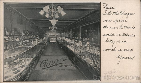Front: Allsplastmunds הארליך"/ריh]] ܕ ܟ Bell Chagru JEWELS 9. 2.5 Dears It's the Cha Chagru one price store on the Board- walk at Atlantic leity; worth a visit Yours. Jetsloon. дл Back: THIS SPACE MAY BE USED FOR MESSAGE HERE