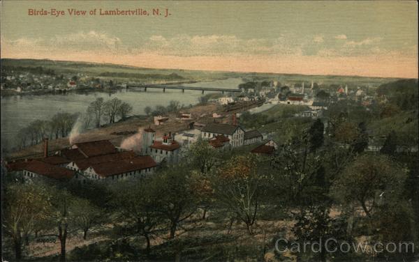 Front: Birds-Eye View of Lambertville, N. J. EAN MI6050 ROLLS ge AUTO Back: PUB. BY J. S. ROBERTS, LAMBERTVILLE, N. J.. FRIC LEIPZIG BERLIN NEW YORK. Pust Grand TWO CENTS