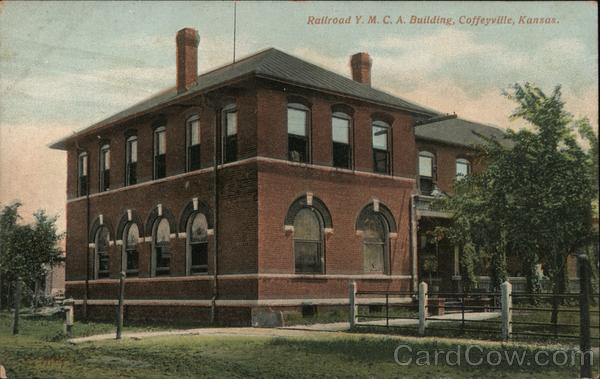 Front: Railroad Y. M. C. A. Building, Coffeyville, Kansas. Back: Manas SOUVENIR POST CARD CO., NEW YORK PRINTED IN GERMANY Post Gard TWO CENTS