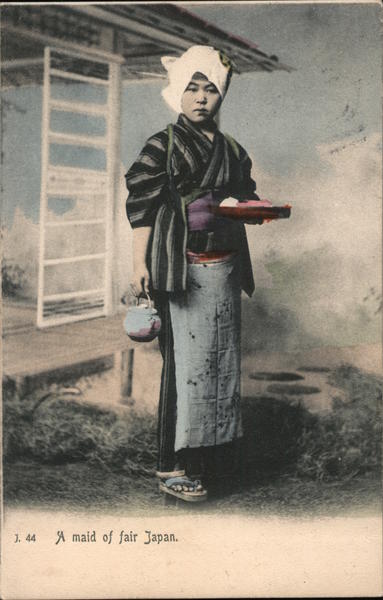 Front: J. 44 A maid of fair Japan. Back: ERS MARIA UNITED STATES OF ANERICA SI NON 1706 FRANKLIN 1790 horf Spay have Splitby the adependent Pluto-CardCo., Mt. Vernon, N.Y. Riverore crew bity RIN