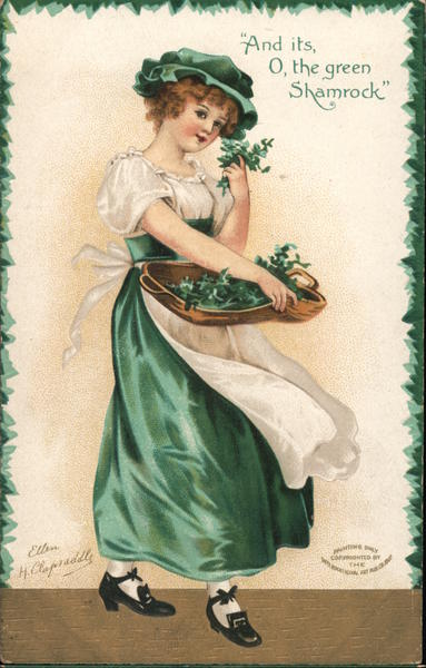 Front: And its, O, the green Shamrock" Ellen PAINTING ONLY COPYRIGHTED BY EANATIONAL ART MUs.CO.1907 Back: Publ.Co. Clapodade International Art LA. ACTE TP NEW YORK BERLIN Olyre 97. Haas lol hal March 14 - og ะพ one blacar. 0.
