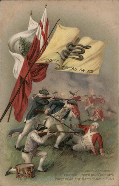 Front: DONT TREAD ON ME OES AT BUNKER TILE FIGHTING UNDER OUR COUNTRY'S FIRST FLAG, THE RATTLESNAKE FLAG. Back: Vega POST D O O O O ON THIS SIDE.