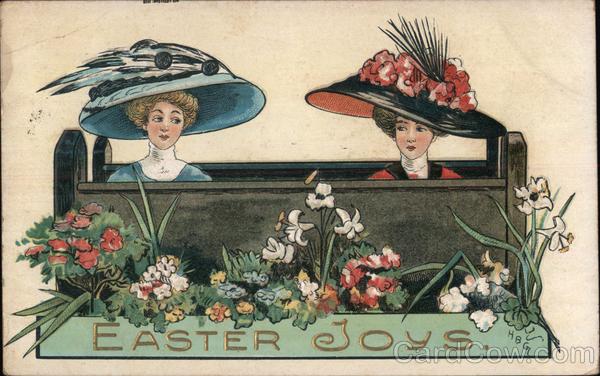 Front: HB G EASTER JOYS. Back: ORK, ge O 30 PM гр. iz ONEGENT THIS SPACE MAY BE USPP FOR WRITING L. & E. Serie 2271 I bought my bonnet last Miss m. Coiley October Emwilton Place Jorg Ossining OUETTE n. y.