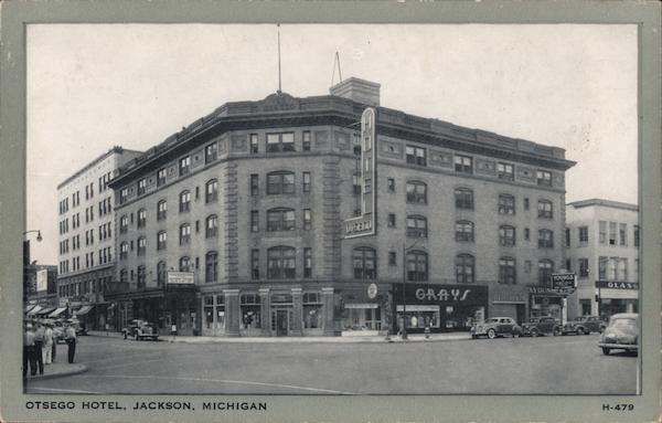 Front: XIII FLE XXL XXXX FEE III II I I F : III. 010 CLO 8X8** 000000000030 OTSEGO HOTEL, JACKSON, MICHIGAN AAA GRAYS M'D שחוהית YOUN H-479 Back: MFD. BY WAYNE PAPER BOX & PRTG. CORP., FORT WAYNE, IND. VIEW CLEAR PLACE