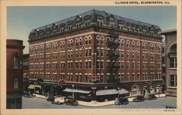 Front: ILLINOIS HOTEL, BLOOMINGTON, ILL. FFE FF EE FE EE FRAY 11111110 НОTEL ILLINDIS FLLARGIS CAFE FIREPROGP 6A-H1168 Back: BLOOMINGTON NEWS AGENCY, BLOOMINGTON, ILL. In Thomas