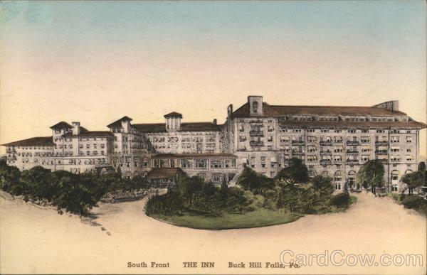 Front: 15 South Front THE INN Buck Hill Falls, Pa. Back: PUBLISHED BY THE BUCK HILL FALLS CO THE FINEST AMERICAN MADE VIEW POST CARDS-THE ALBERTYPE CO., BROOKLYN, N. Y. HANDCOLORED
