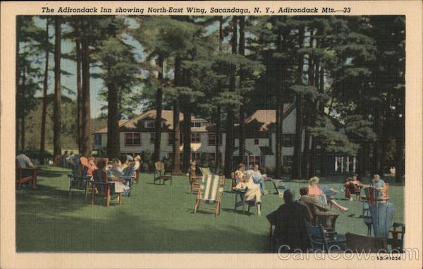 Front: The Adirondack Inn showing North-East Wing, Sacandaga, N. Y., Adirondack Mts.-33 5B-H1036 Back: C. W. HUGHES & CO., INC., MECHANICVILLE, N. Y. eot