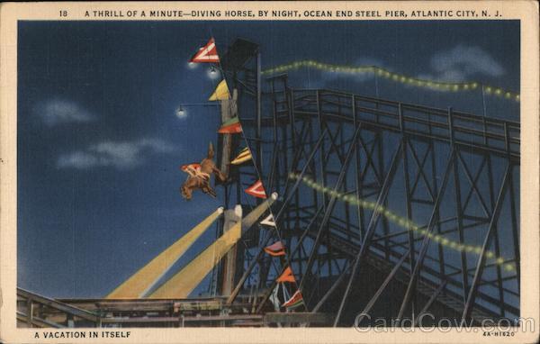 A THRILL OF A MINUTE-DIVING HORSE, BY NIGHT, OCEAN END STEEL PIER, ATLANTIC CITY, N. J.