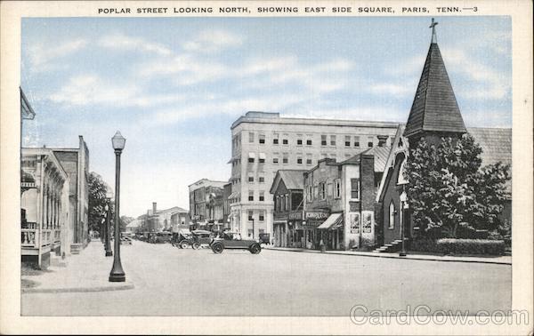 Front: POPLAR STREET LOOKING NORTH, SHOWING EAST SIDE SQUARE, PARIS, TENN.–3 (PEARECHPLTOL Back: 4 PLACE 15733 MADE IN U. S. A. BY E. C. KROPP CO., MILWAUKEE, WIS. - (HIA) /7/
