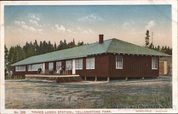 Front: No. 208 HT THE 7 THUMB LUNCH STATION- YELLOWSTONE PARK. HAYNES-PHOTO. Printed in Germany. Back: MESSAGE. [Stamp Here] Domestic, 1c Foreign, 2c