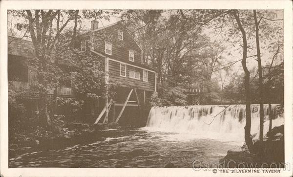 Front: 30 KIT THE SILVERMINE TAVERN Back: THE OLD MILL has a picturesque setting by the waterfall. It contains quaint overnight guest rooms with bath, furnished in antiques. Honey- mooners' Paradise. SILVERMINE, NORWALK, CONN. POST CARD