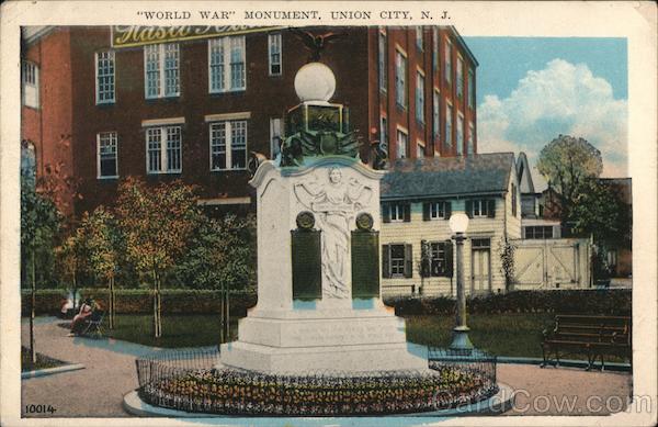 Front: 10014- “WORLD WAR” MONUMENT, UNION CITY, N. J. Nasio தழ் Back: Pub. by Manhattan Post Card Co., New York City. (OEMUSA STAMP HERE