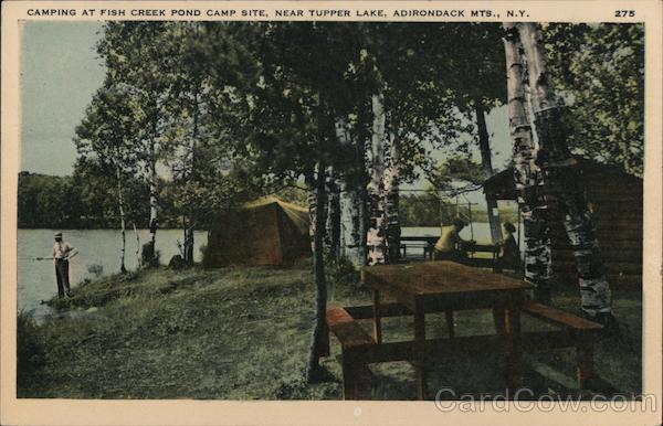 Front: CAMPING AT FISH CREEK POND CAMP SITE, NEAR TUPPER LAKE, ADIRONDACK MTS., N.Y. 275 Back: Santway Photo-Craft Company, Watertown, N.Y. Message Only 2.00 PHOTO-COLOR HERE