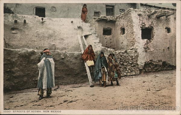 Front: 11590 STREETS OF ACOMA, NEW MEXICO Back: MADE ONLY BY DETROIT PUBLISHING CO. "PHOSTINT" CARD. TRADE MARK REG. U. S. PAT. OFF. THIS SPACE MAY BE USED FOR MESSAGE. AND CANADA. FOREIGN. TWO CENTS