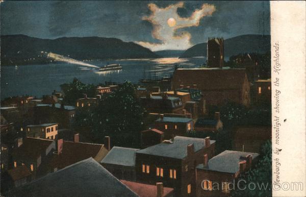 Front: || J| || ** Newburgh by moonlight showing the Highlands. Back: Re Newburgh. N. Y. 160 One Cent for United States, and Island Possessions, Cuba, Canada and For Foreign.