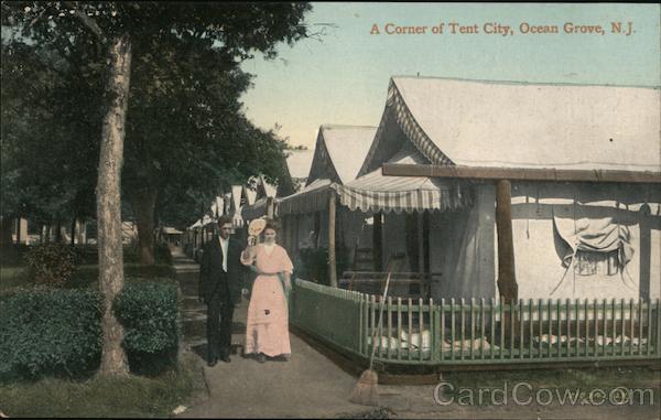 Front: hier A Corner of Tent City, Ocean Grove, N.J. 210,241 Back: The Valentine & Sons Publishing Co., Ltd., New York THROUGHOUT THE WORLD. Correspondence. SNOS CARD. FAMOUS