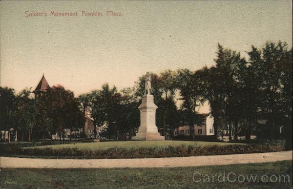 Front: TI A40622 Soldier's Monument, Franklin. Mass. Back: Published for Albert C. Mason, Franklin, Mass. No. 1. Made in Germany. 1 c 2 c.