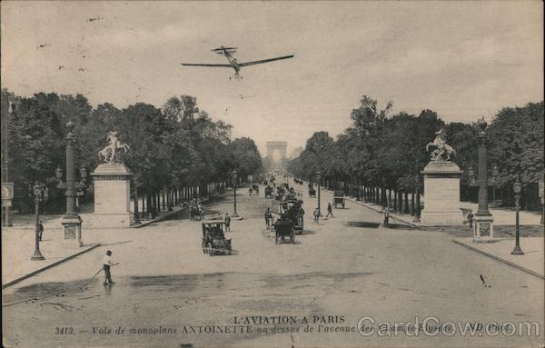 Vols de monoplans ANTOINETTE au dessus de l'avenue des Champs-Elysées.