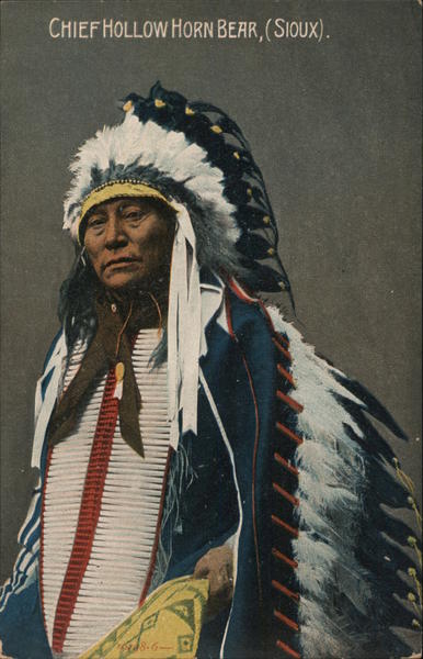 Front: CHIEF HOLLOW HORN BEAR, (SIOUX). 08-6-0 T Back: Souvenir Post Card Co., New York Printed in Germany. TWO CENTS