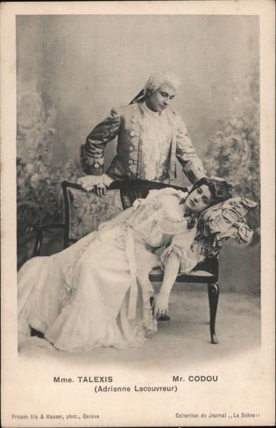 Front: Mme. TALEXIS Mr. CODOU (Adrienne Lecouvreur) Pricam fils & Hauser, phot., Genève Collection du Journal ,, La Scène.. Back: .. M... CARTE POSTALE. Ce côté est exclusivement réservé à l'adresse.