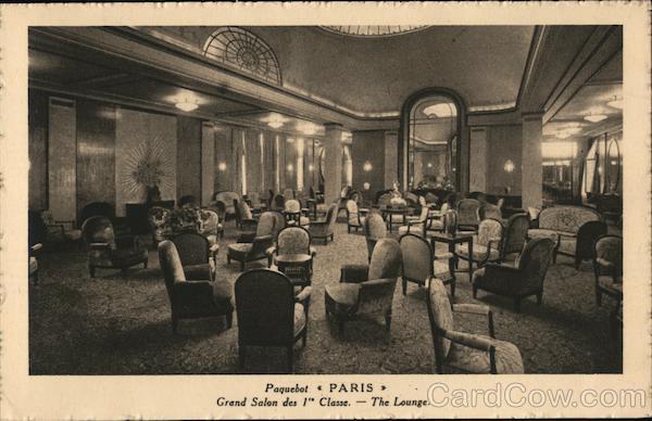 Front: Paquebot « PARIS >> Grand Salon des 1" Classe. The Lounge. Back: LEVY ET NEURDEIN RÉUNIS, 44. RUB LETELLIER, PARIS CIE GLE TRANSATLANTIQUE