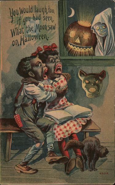 Front: You Would laugh, too, if you had seen. What the Moon saw on Halloween ON 6508 Back: Post Cards THIS SPACE MAY BE USED FOR CORRESPONDENCE. YOURS AS TRUELY F.D.C.K.L.B PM 06124 TE NX 35 99. MISS JOSPRENE VOEGELE LANCASTER N.Y.