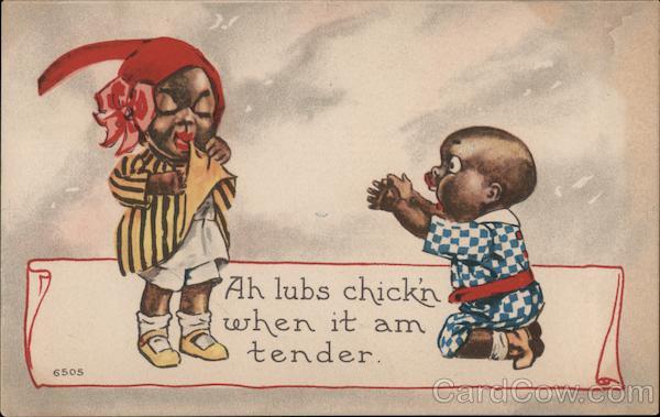 Black boy and girl: "Ah lubs chick'n when it am tender"
