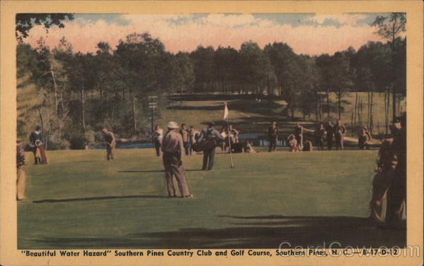 Front: 1. "Beautiful Water Hazard" Southern Pines Country Club and Golf Course, Southern Pines, N. C. B-17-D-12 Back: Hayes Book Shop, Southern Pines, N. C. 33078 Colorcraft-Made by The Dexter Press, Pearl River, N. Y.