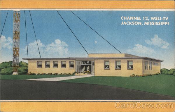 | Mississippi's newest and most powerful VHF television station. WSLI-TV, Channel 12, Jackson, Miss. This modern building, sitting on one of the highest points in the area, southwest of Jackson on Robinson Road Extension, houses transmitter, studios and offices of WSLI-TV. |
