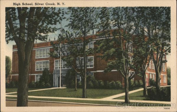 Front: High School, Silver Creek, N. Y. 70090 IT Back: "TICHNOR QUALITY VIEWS" REG. U. S. PAT. OFF. MADE ONLY BY TICHNOR BROS., INC., BOSTON, MASS. PUB. BY MC CLENATHAN PRINTERY INC., DUNKIRK, N, Y.
