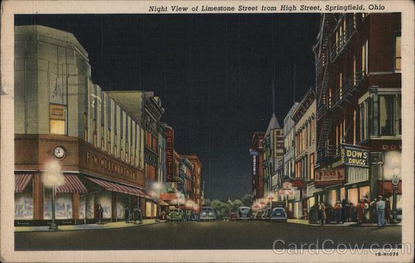 Night View of Limestone Street from High Street, Springfield, Ohio