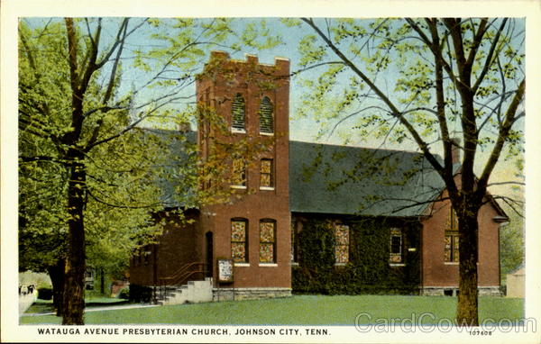 Front: WATAUGA AVENUE PRESBYTERIAN CHURCH, JOHNSON CITY, TENN. 107608 Back: 60 MADE IN USA c. T. AMERICAN ART COLORED CE CHIC CAGO