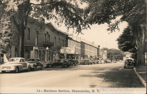 Front: MITICE LIQUOR STORE CM TICE CO BOBBETT JEWELER COLONET JAMES STEWART MAGIC TOWN TUMBLEWEED TRAIL 14-Business Section, Skaneateles, N. Y. Back: -Kodak-- -Paper