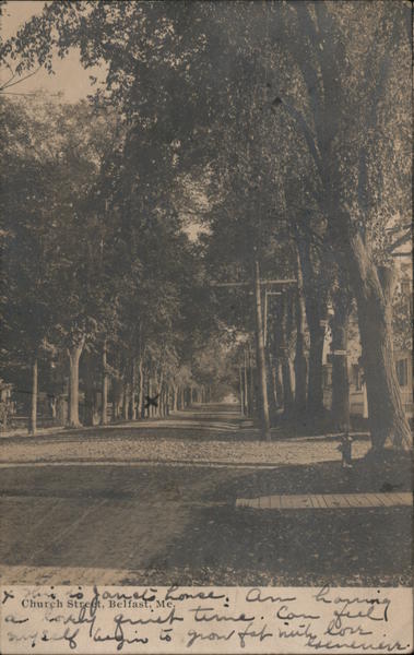 Front: an et house. Am Me; Church Street, Belfast, له سم سنة - giging love eenenere. PEARL angelf begin to grow fat mily منس Back: AUG 3 ON-Y-30A CONN 06 Mrs. G. C. Allis. AUG 2 7 AM 4000 UNITE 1706 FRAN POS 169 Main Street Durby, Conn. MESC