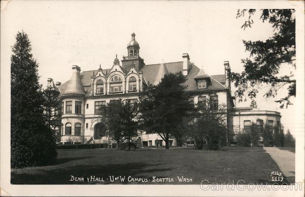 Front: int DENNYHALL - UFW CAMPUS. SEATTLE - WASH ELLS 1119 Back: 1 PLACE 1946 Drama Dept, on 4th floor (until new in 1955?) bulding finished