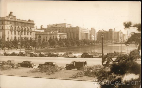 Front: YYYYLIT THEE 2 Back: Marunouchi is the business center of Tokyo. Its rows of solid buildings face the Palace across the age-old moat 1947 JAPAN TRAVEL BUREAU CARD