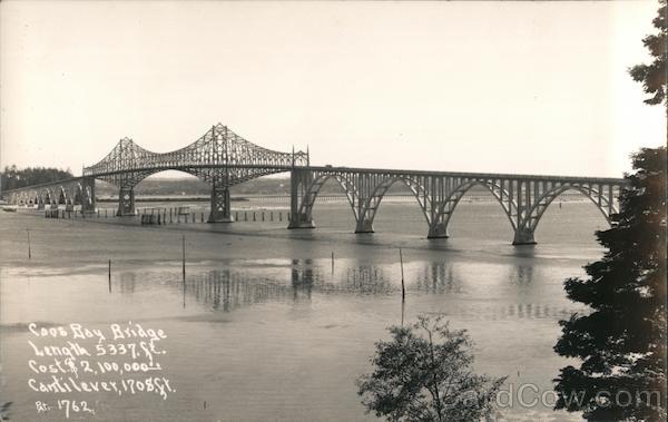 Coos Bay Bridge Length 5337. SC. Cost $2,100,000. Cantilever, 1708.51. PAT. 1762. 1