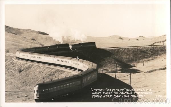 "LUXURY "DAYLIGHT" GIVES ITSELF A NOVEL TWIST ON FAMOUS HORSESHOE CURVE NEAR SAN LUIS OBISPO" 226