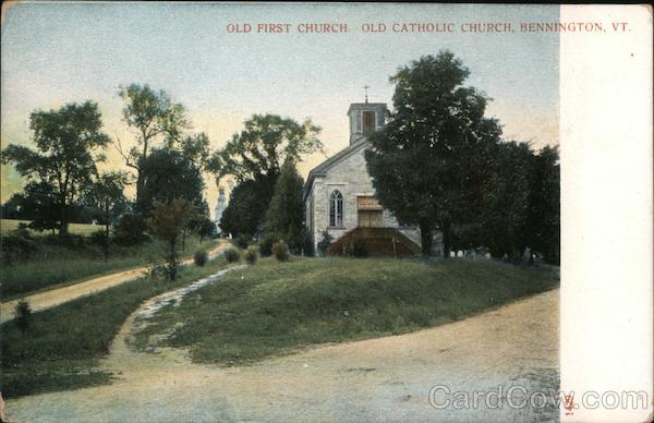 Front: OLD FIRST CHURCH. OLD CATHOLIC CHURCH, BENNINGTON, VT. 1429 Back: A.C.Bosselman & Co., New York! Card & کرد Place Postage- Domestic: Foreign: Two Cents.