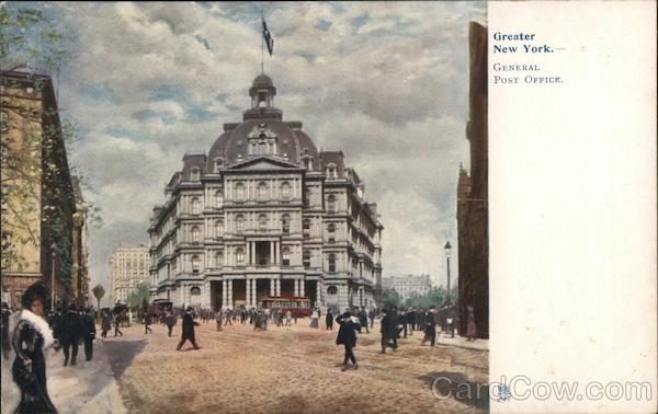 Front: **** GIG TI MENAN PR Greater New York.- GENERAL POST OFFICE. RES Back: Raphael Tuck & Sons' Postcard Series No. 1038. "Greater New York. ART PUBLISHERS TO THEIR MAJESTIES THE KING & QUEEN 79 POST CARD