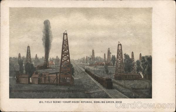 Front: Folk Har 11 MEREKA OIL FIELD SCENE-COURT HOUSE ROTUNDA, BOWLING GREEN, OHIO Back: E. M. HUBBARD, PUBLISHER BOWLING GREEN, OHIO 500 Two Cents