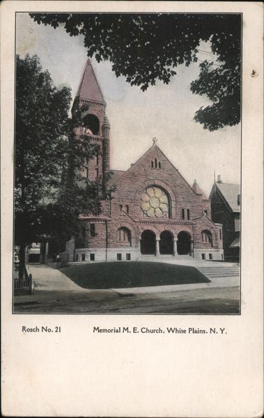 Front: Rosch No. 21 19 Memorial M. E. Church, White Plains. N. Y. Back: Post Card-- los th 3,00 TWO CENTS