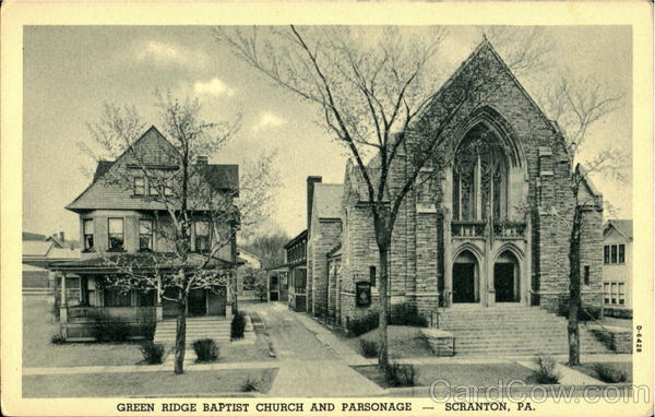 Front: GREEN RIDGE BAPTIST CHURCH AND PARSONAGE SCRANTON, PA. D-6428 Back: 50 GREEN RIDGE BAPTIST CHURCH and PARSONAGE SCRANTON, PA. Organized 1892