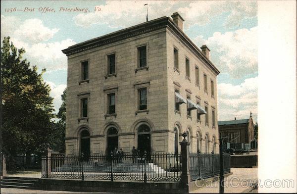 Front: 1256-Post Office, Petersburg, Va. WA Hi Back: Souvenir Post Card Co., New York and Berlin. ७० Printed in Germany.