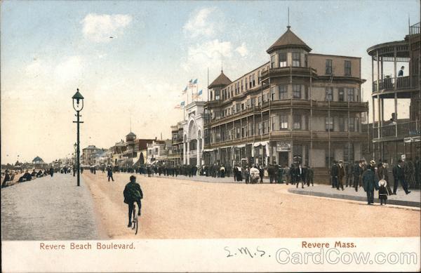 Front: EH Revere Beach Boulevard. s.m.s. SODA Revere Mass. BOULEV Back: Leipzig, Dresden. 5909 Published by The New England News Company, Boston Mass, 4- United States and Island Possession, Cuba, Canada and For all other Countries Two Cents